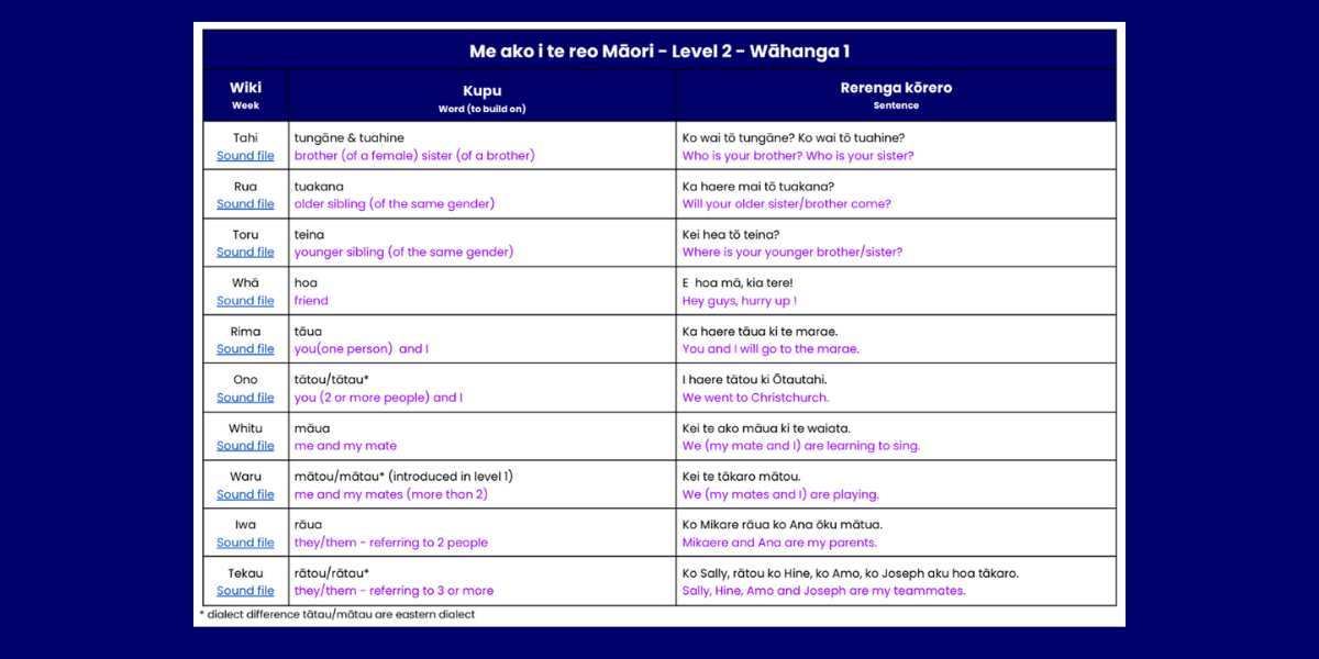 Wall displays, Sound bytes, Word, Sentence and Phrase support aligned with Te Aho Arataki Marau mō te Ako i Te Reo Māori
