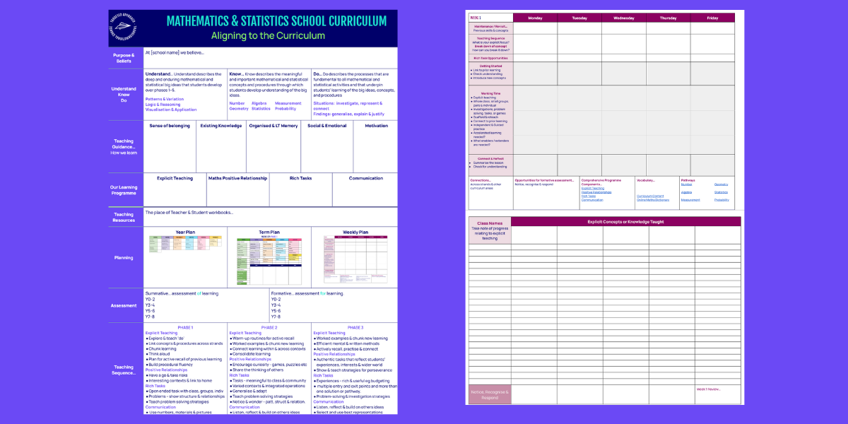 Weekly planning templates for Maths and Stats