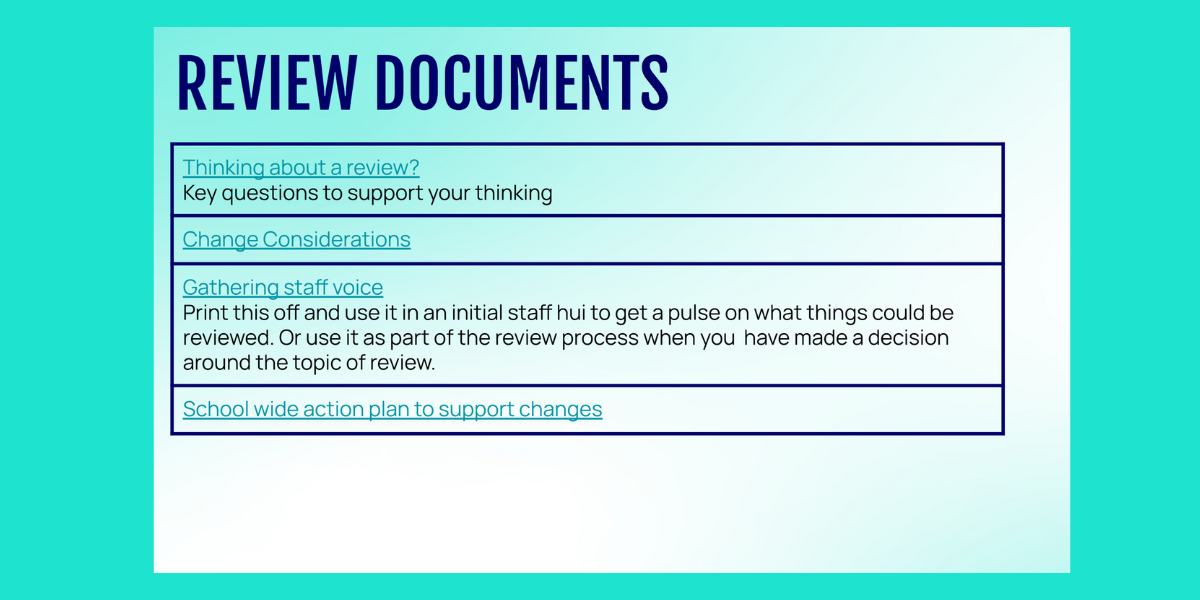 Documents to support a review process in your kura